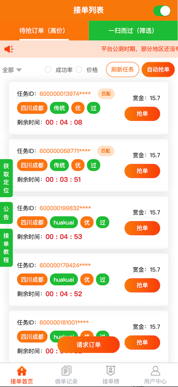 類似“碼幫平臺/FZ輔助/碼力平臺/閃電接單/蜻蜓輔助/雛菊輔助”,第三方微信輔助注冊任務(wù)管理平臺——“蜜蜂”任務(wù)平臺管理系統(tǒng),幫助有大量微信注冊需求的商家和想要0元投入月入過萬的兼職人員搭建連通的橋梁。系統(tǒng)由用戶端H5/APP、商家端H5/APP、地推商戶端H5、商家端PC、平臺端PC架構(gòu)而成,支持用戶隨時提現(xiàn),支付寶實時到賬,商家端一鍵掃碼下單,方便快捷;系統(tǒng)支撐商家每天10萬+的訂單下發(fā)和用戶隨時隨地搶單,做單,賺取傭金,提現(xiàn)等更多功能。。。